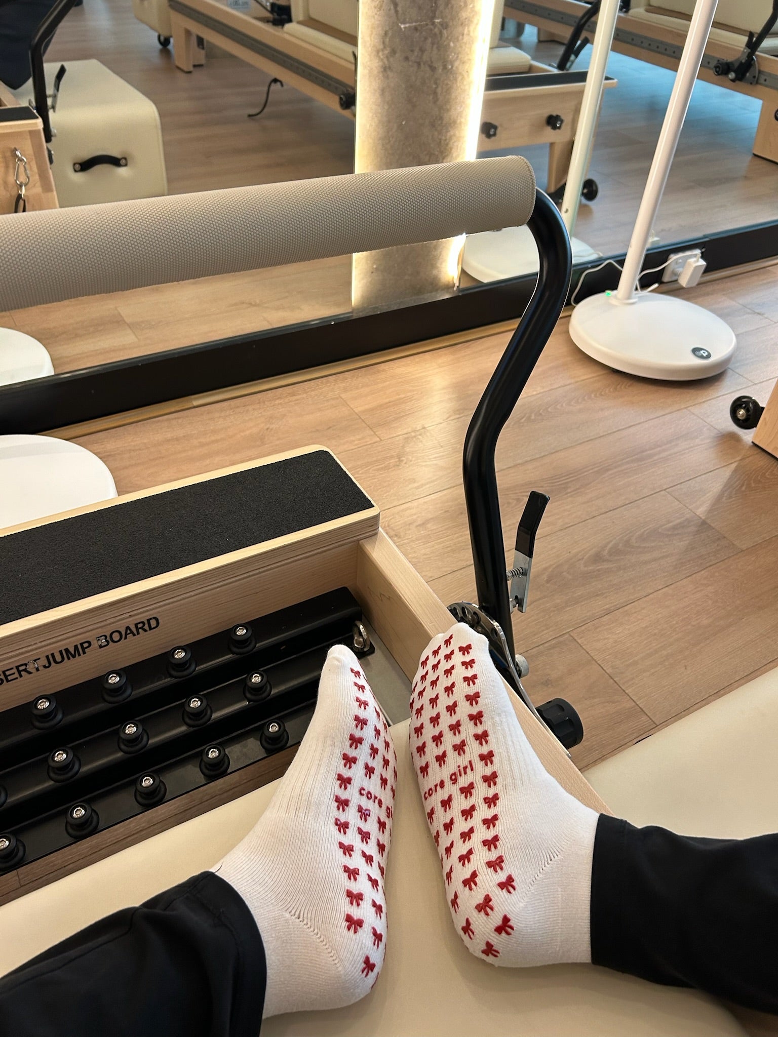 The core girl Pilates Grip Socks bundle includes two pairs of our best-selling non-slip bow grip socks, designed for balance, elegance, and control. Each pair features custom bow grips, gentle arch compression, and a breathable cotton blend that keeps you supported through every reformer flow.